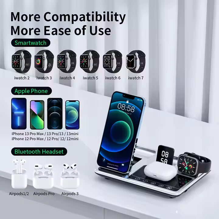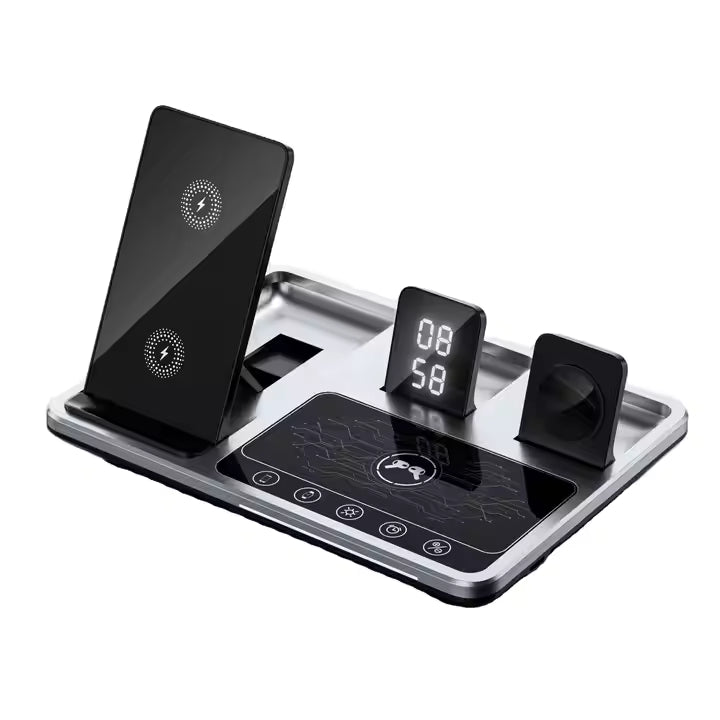 - شحن لاسلكي 4 في 1 للهواتف، وساعة آبل، وسماعات AirPods، وقلم الشاشة